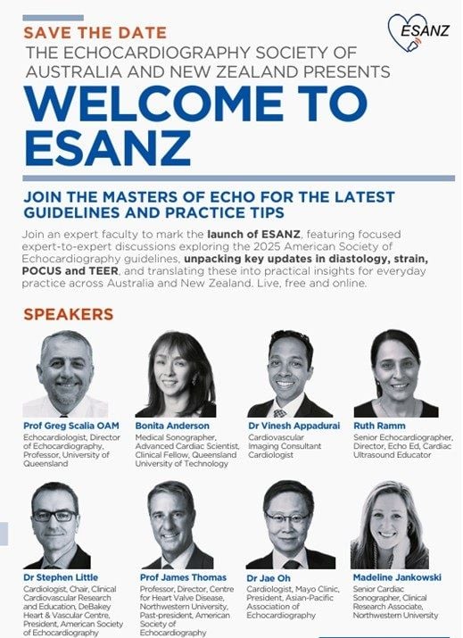 Then enjoy the CPD activity of having Australian greats Bonita Anderson, Greg Scalia, Vinesh Appadurai and Ruth Ramm interview international experts Dr Jae Oh, Dr Steve Little, Dr James Thomas and Madeline Jankowski regarding their recent American Society of Echo Guidelines and their implications and relevance to the ANZ Echo landscape